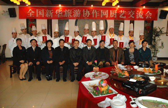 本次會(huì)議另一大亮點(diǎn)是協(xié)作網(wǎng)成員單位之間所進(jìn)行的廚藝交流。四川烹專等單位的專家對(duì)協(xié)作單位選送的的17道菜品進(jìn)行了認(rèn)真評(píng)選。按照色、香、味、形、意五要素要求和總體評(píng)價(jià),最后河北匯文大酒店河北燴菜,廣西新華大酒店金牌豬手、香酥荔蓉蝦、火麻浸鱸魚,新華國(guó)際酒店龍行天下、黃金燜鮮鮑,花島度假酒店碧潭飄雪、檸香鱈魚絲,陽光新華綿陽酒店官府四寶,瞿上園酒店手撕牛肉榮獲“新華十佳名菜”稱號(hào)。