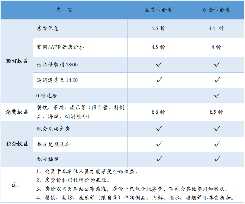 新華海頤酒店集團“海頤匯”單位會員分為二個類別,分別是單位“至尊卡”會員和單位“鉆石卡”會員。
