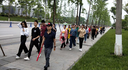 2019年5月14日早酒店工會組織全體員工從酒店出發(fā)步行前往活動地點(diǎn)虎嘯山莊,一路上歡聲笑語,氣勢昂揚(yáng),展現(xiàn)出我們“新華海頤”人的朝氣蓬勃的精神。
