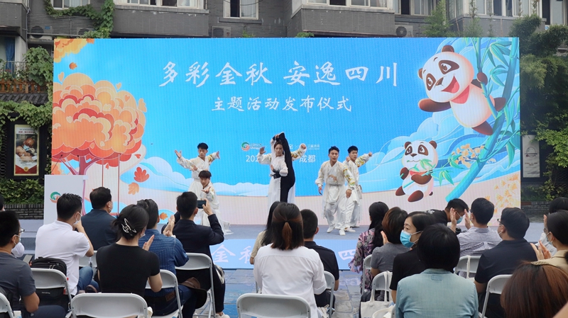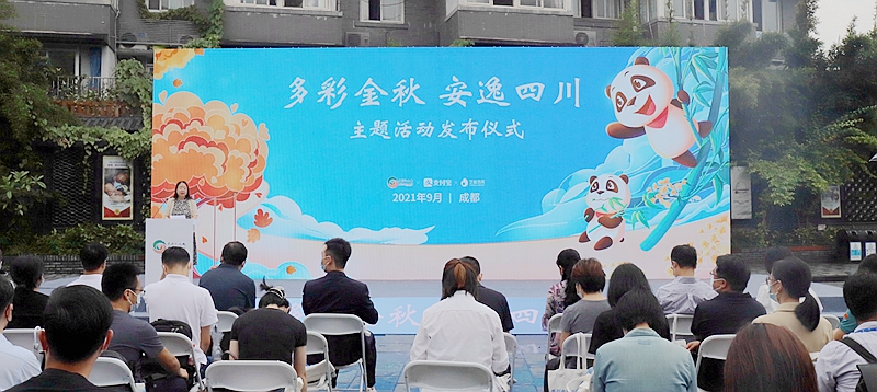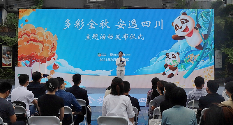 9月13日,“多彩金秋·安逸四川”主題發布會在寬窄巷子舉行。會上發布了十條金秋旅游線路、“信用游”等文旅特色活動以及“‘安逸熊貓’線上線下市集”等主題推廣活動,進一步激發文化旅游消費潛力。
